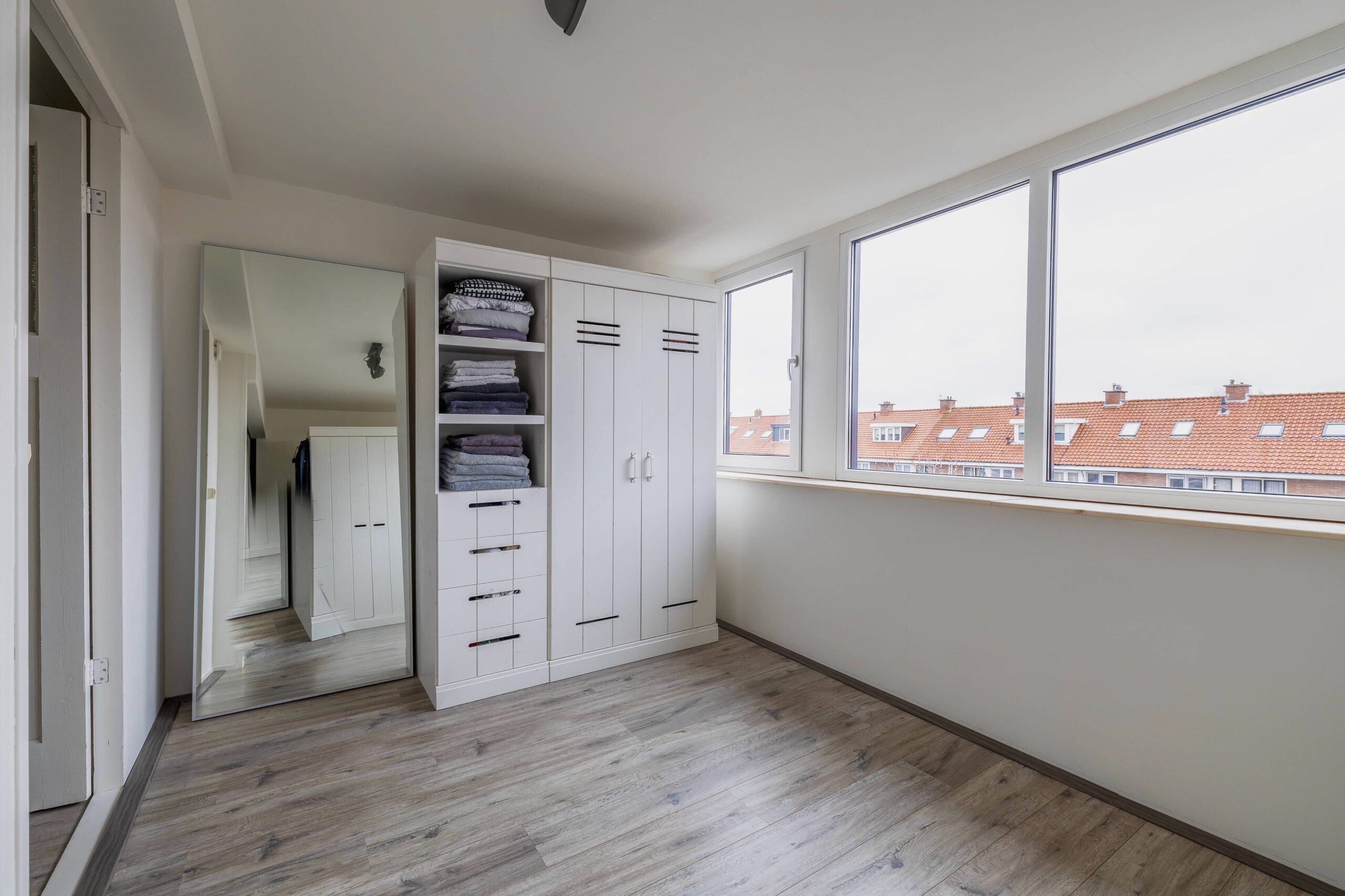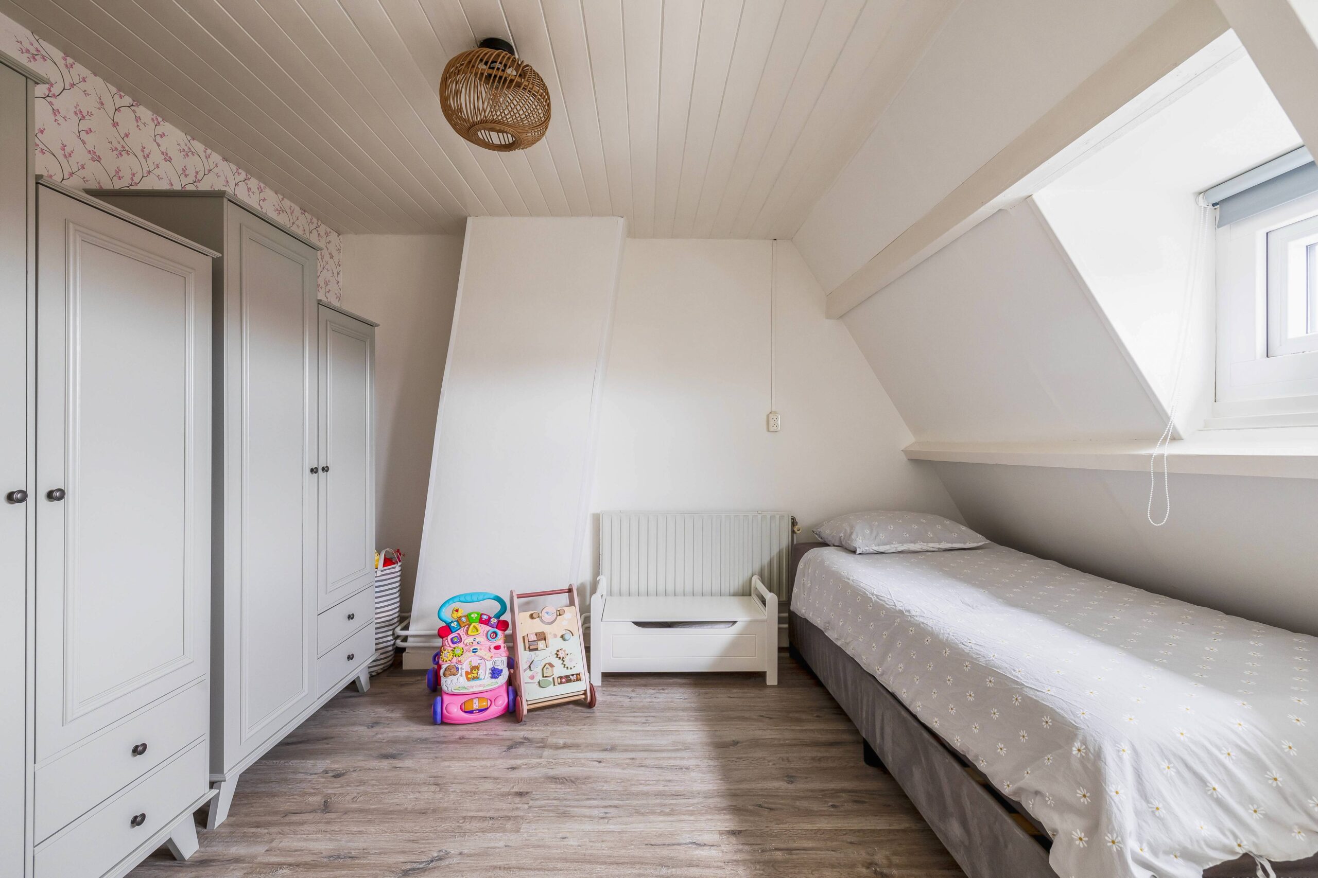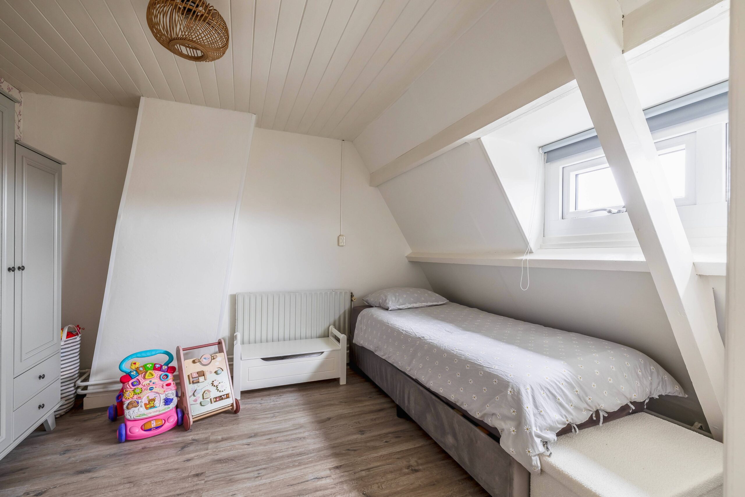 Op de tweede verdieping vind je nog eens twee grote slaapkamers en de opstelling van de cv-installatie en het witgoed.