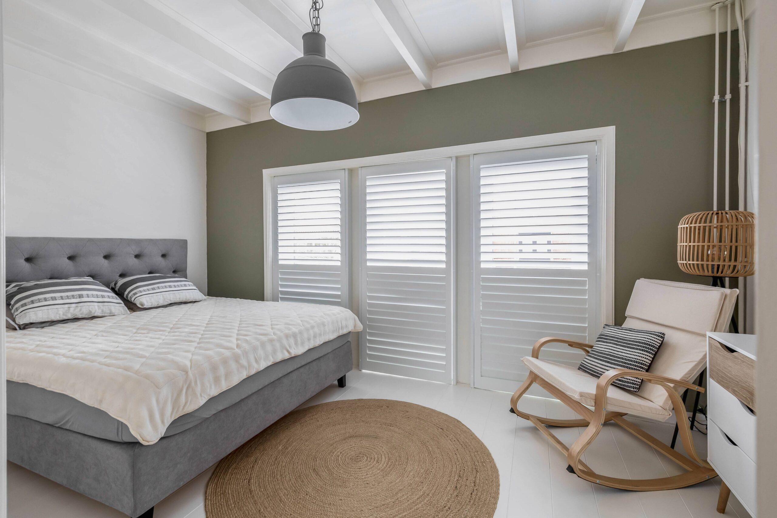 Op de eerste verdieping bevinden zich twee ruime slaapkamers, afgewerkt met strak stucwerk, houten vloerdelen en karakteristieke balkenplafonds die zichtbaar zijn gebleven. De slaapkamer aan de voorzijde beschikt over een praktische vaste kast. De moderne badkamer is voorzien van een wastafelmeubel, spiegelkast en inloopdouche met dubbele regendouche. Het tweede toilet is separaat van de badkamer geplaatst.