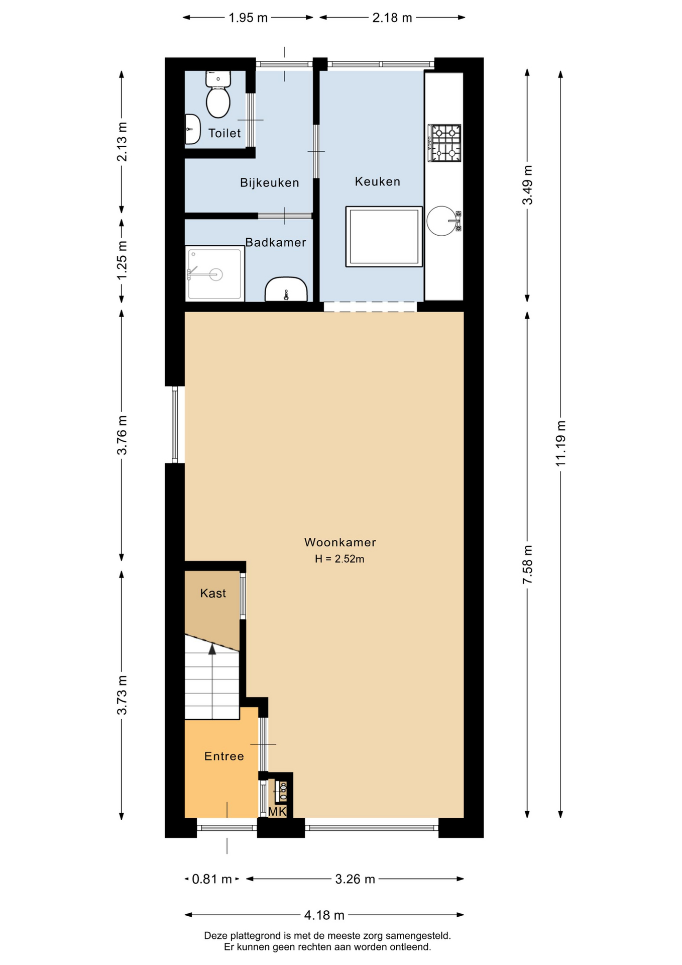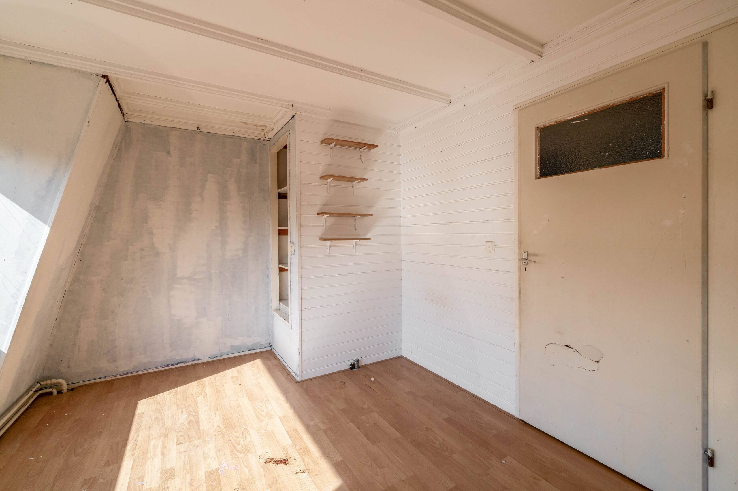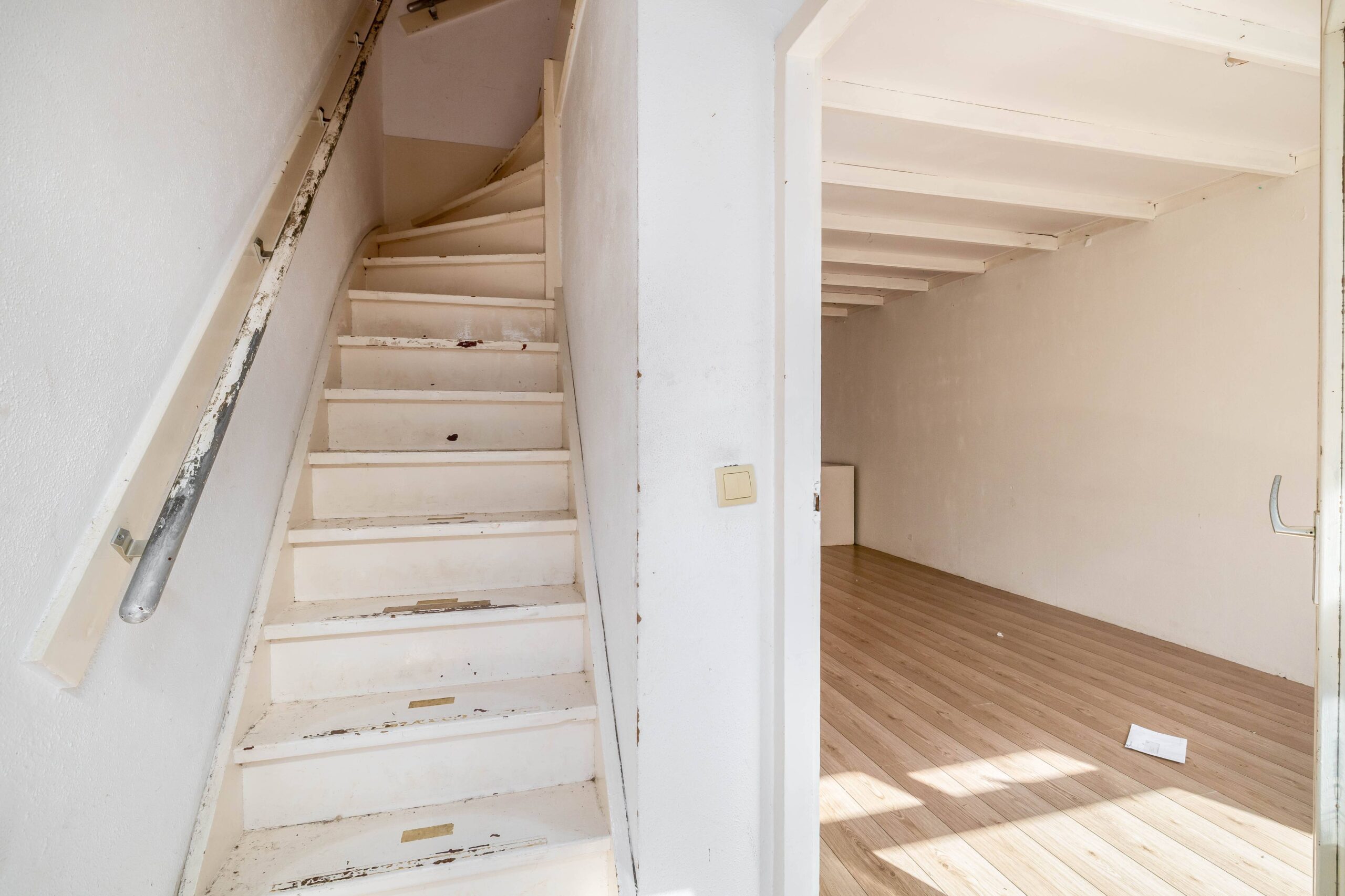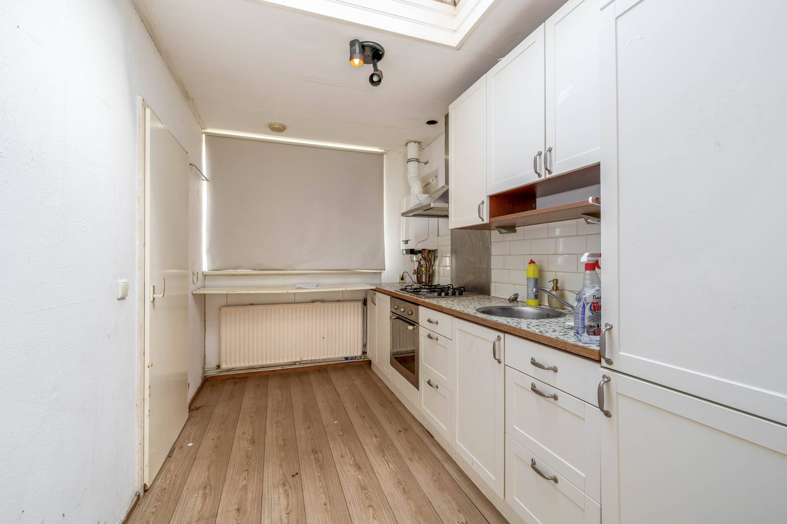 De woning is eenvoudig van afwerking en vraagt om modernisatie, maar biedt een solide basis. De begane grond is aan de achterzijde uitgebouwd, wat zorgt voor extra leefruimte.