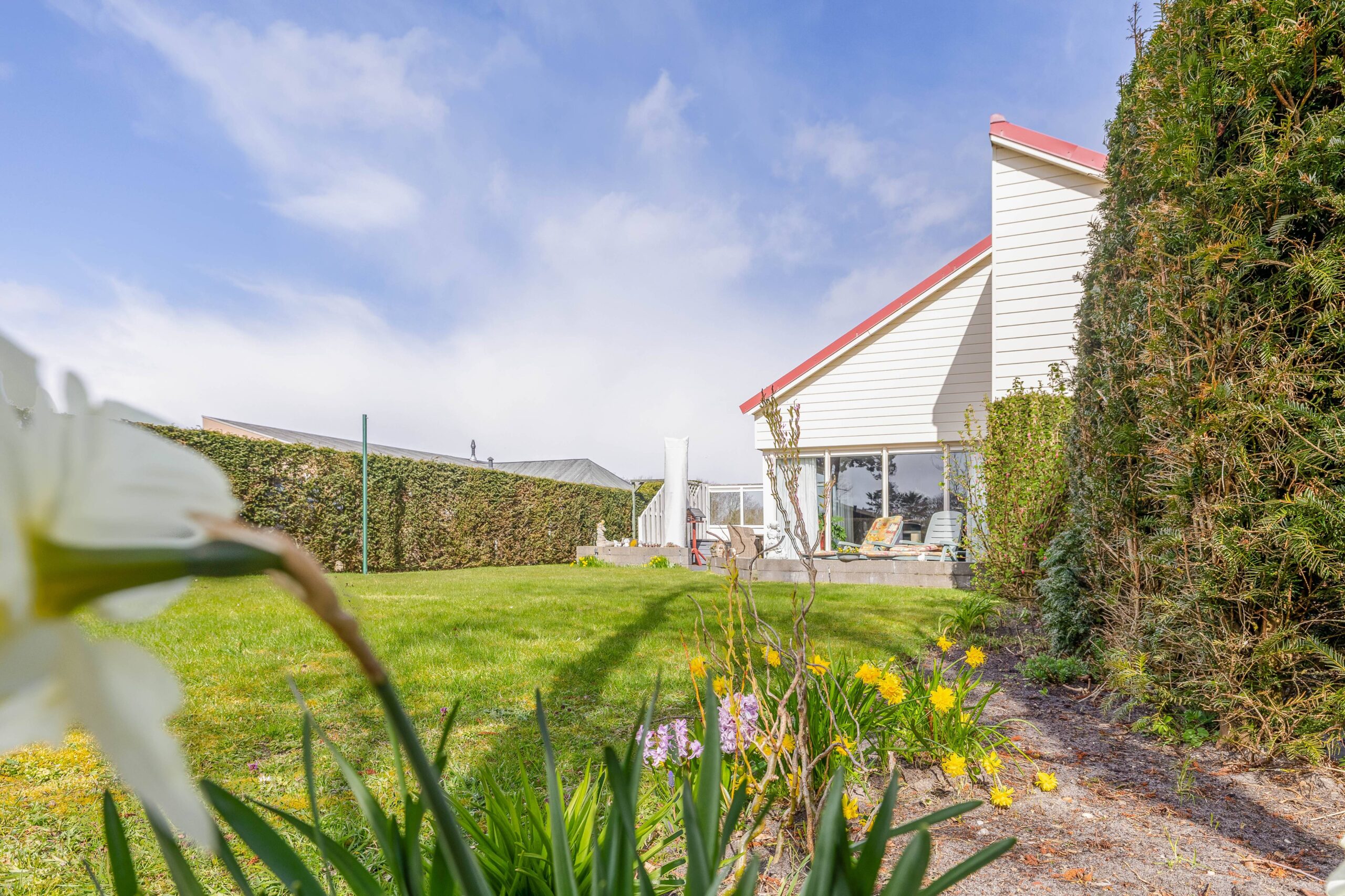 Ook buiten heeft deze woning veel te bieden. De ruime kavel zorgt voor volop privacy en rust. Aan de achterzijde grenst het perceel aan het water en vanuit hier een verbinding naar de kanoroute.