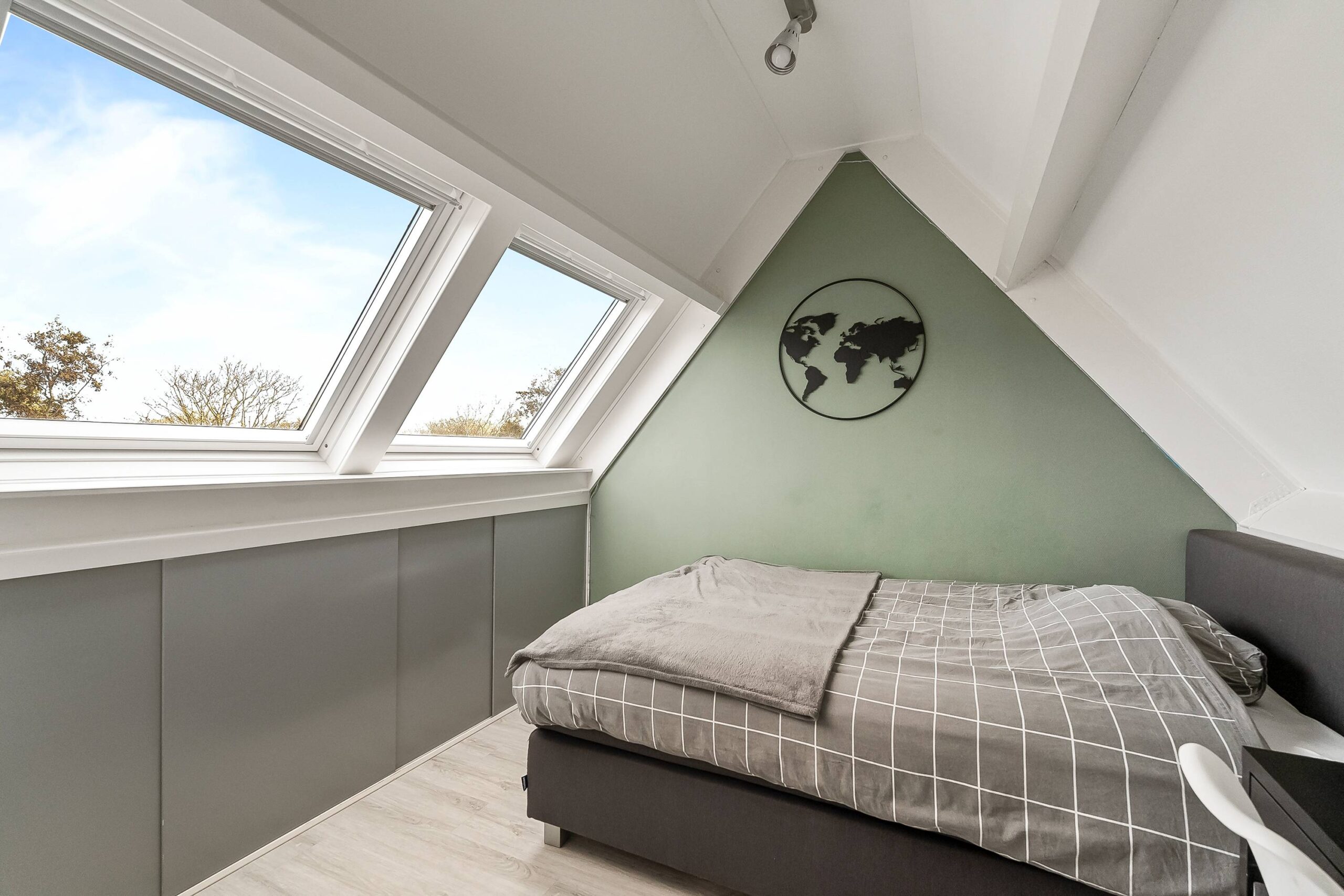 Op de eerste verdieping bevinden zich drie ruime slaapkamers en een verzorgde badkamer met een frisse, moderne uitstraling. De zolderverdieping biedt bovendien een vierde slaapkamer, ideaal als werk-, logeer- of hobbyruimte.