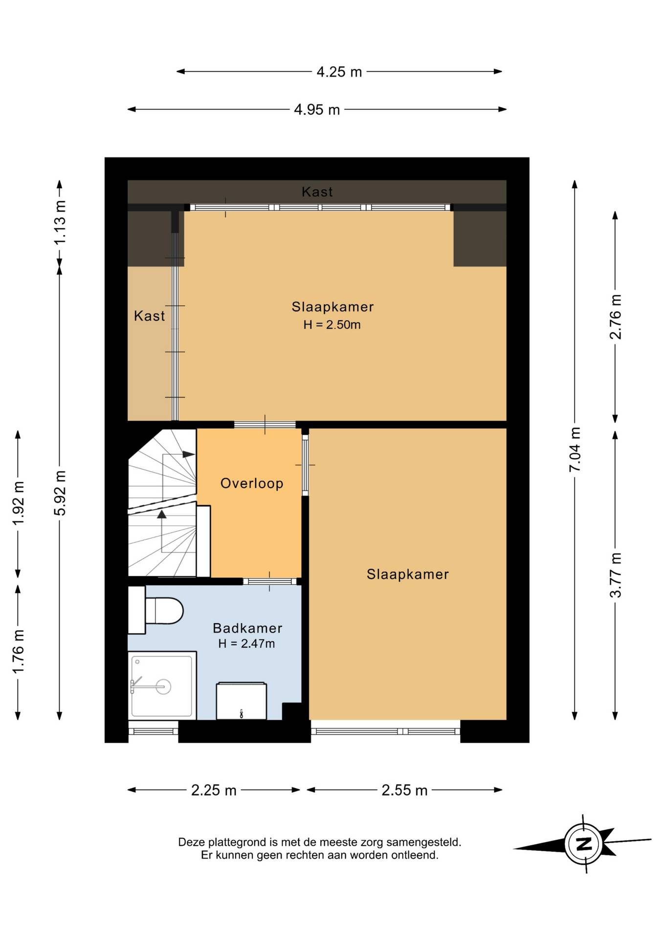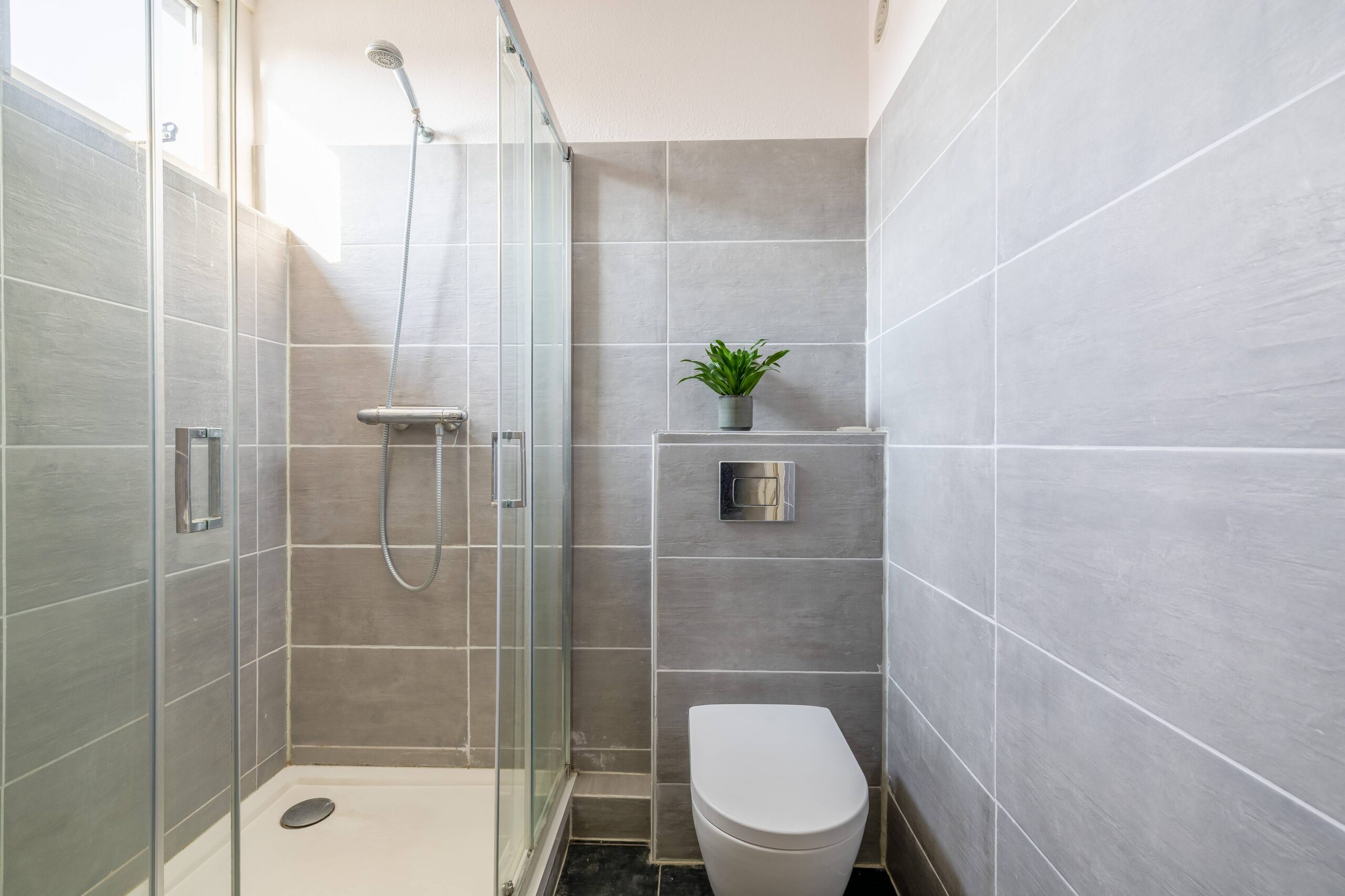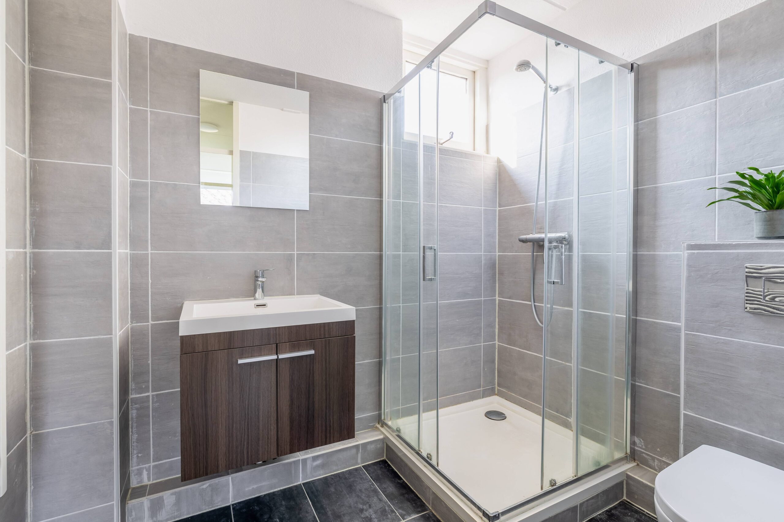 Op de eerste verdieping bevinden zich twee ruime slaapkamers. De slaapkamer aan de achterzijde beslaat de volledige breedte van de woning en is voorzien van een dakkapel, wat extra ruimte oplevert. De tweede slaapkamer is eveneens van goed formaat. De badkamer is voorzien van een wastafel, douche en een tweede toilet. De ruimte functioneert prima, maar biedt tevens de mogelijkheid om deze geheel naar eigen smaak en stijl te moderniseren.
