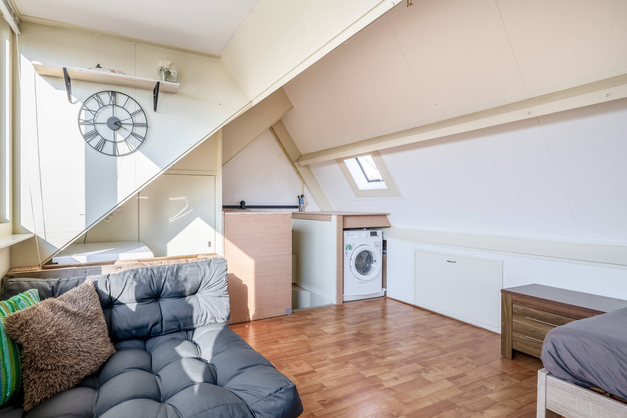 De zolderverdieping is bereikbaar via een vaste trap en voorzien van zowel een dakkapel als een dakvenster, wat zorgt voor extra ruimte en daglicht. Dankzij een praktisch luik bij de trap is de verdieping volledig afsluitbaar. Deze ruimte wordt momenteel gebruikt als derde slaapkamer en biedt tevens de aansluiting voor de wasmachine. De cv-ketel en mechanische ventilatiebox zijn netjes weggewerkt in een vaste kast.