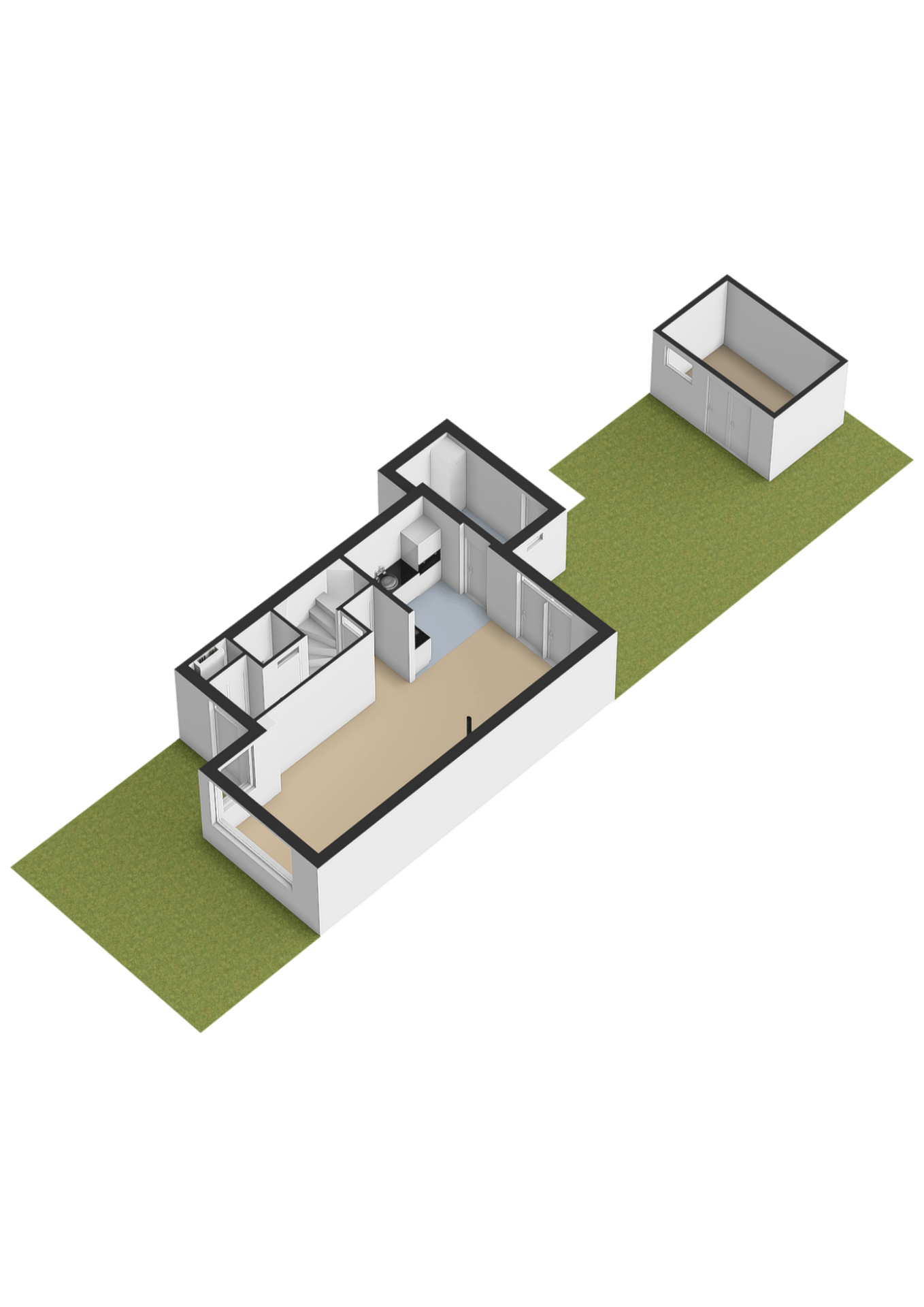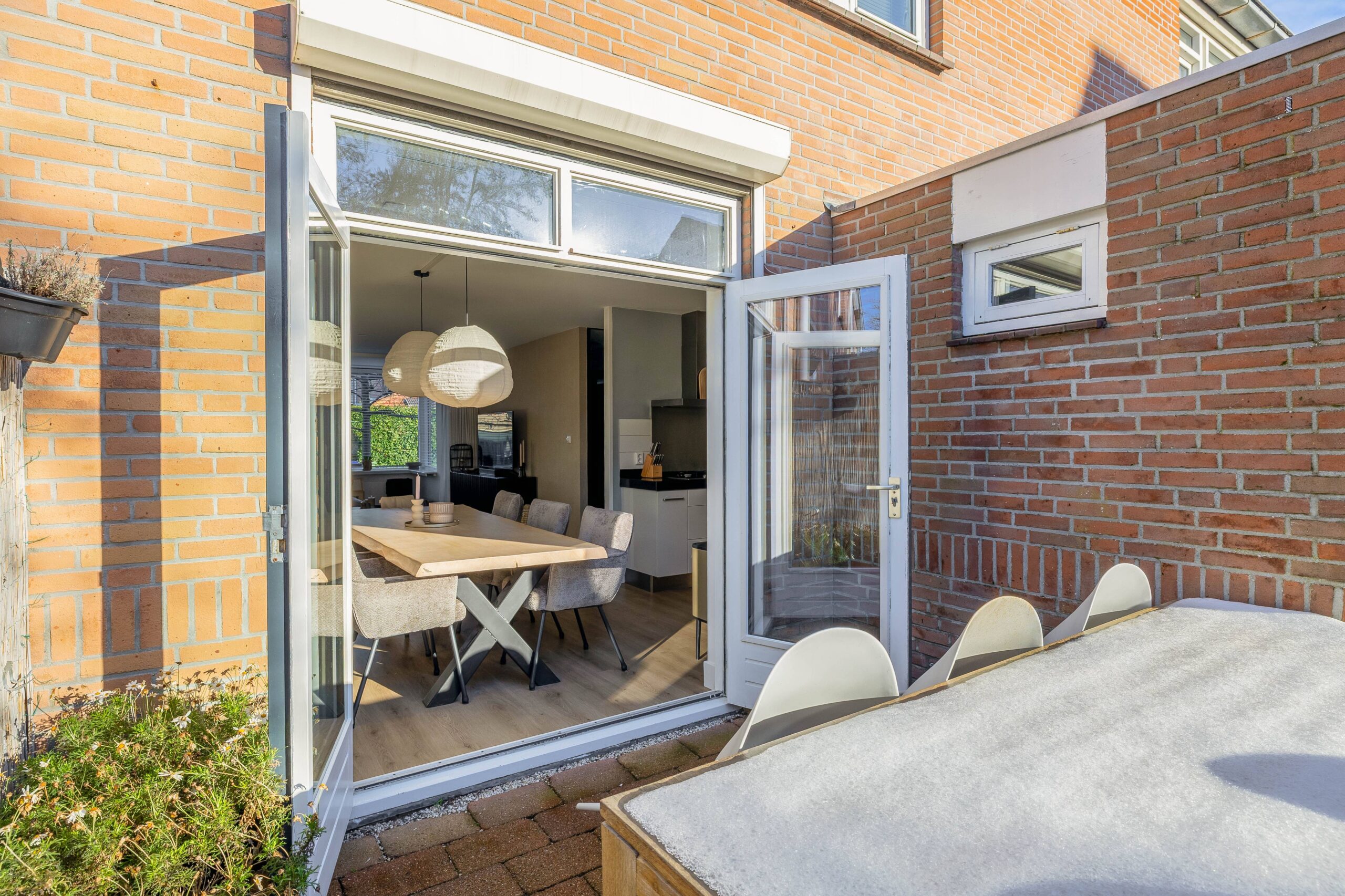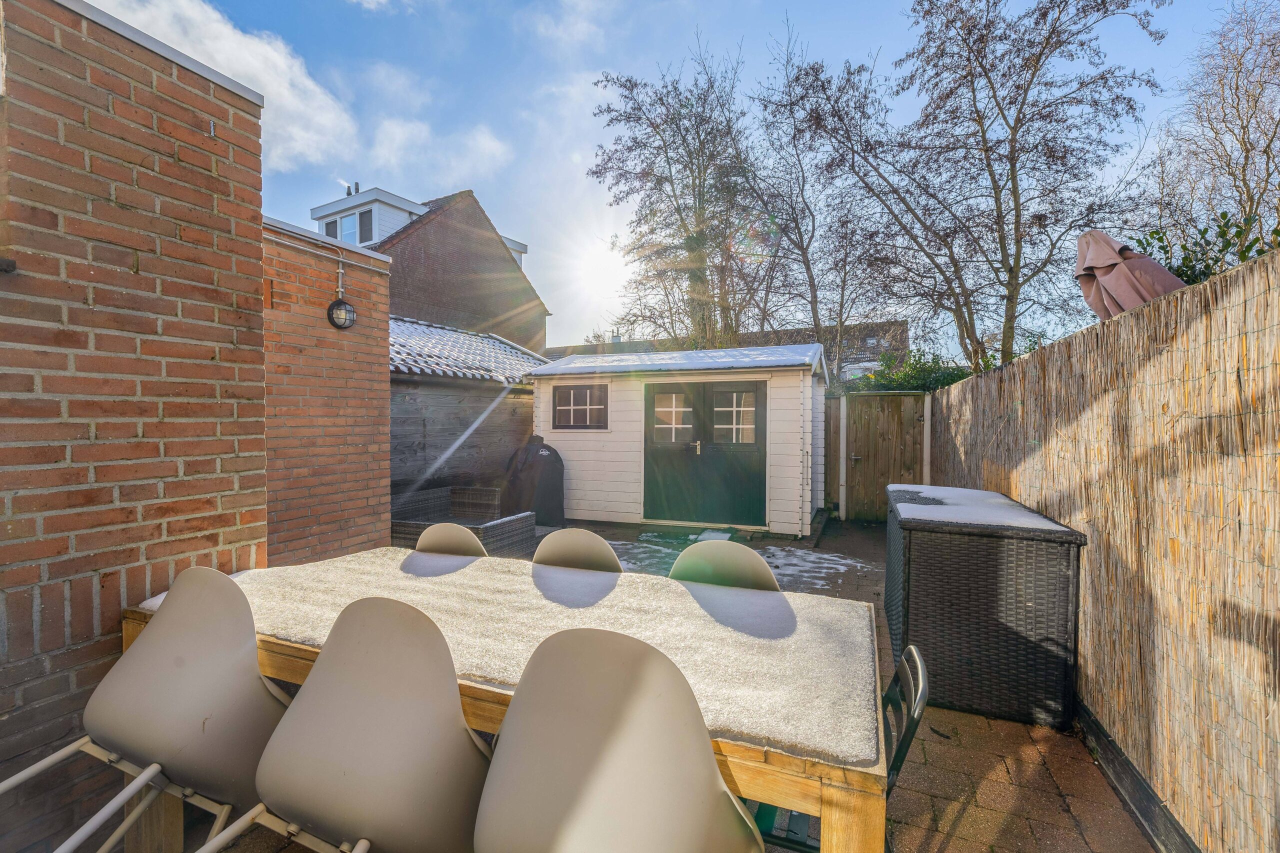 Via de openslaande deuren in de woonkamer stap je de onderhoudsvriendelijke achtertuin in. Hier kun je heerlijk privé genieten van het buitenleven. De tuin beschikt over een vrijstaande houten berging en een achterom.