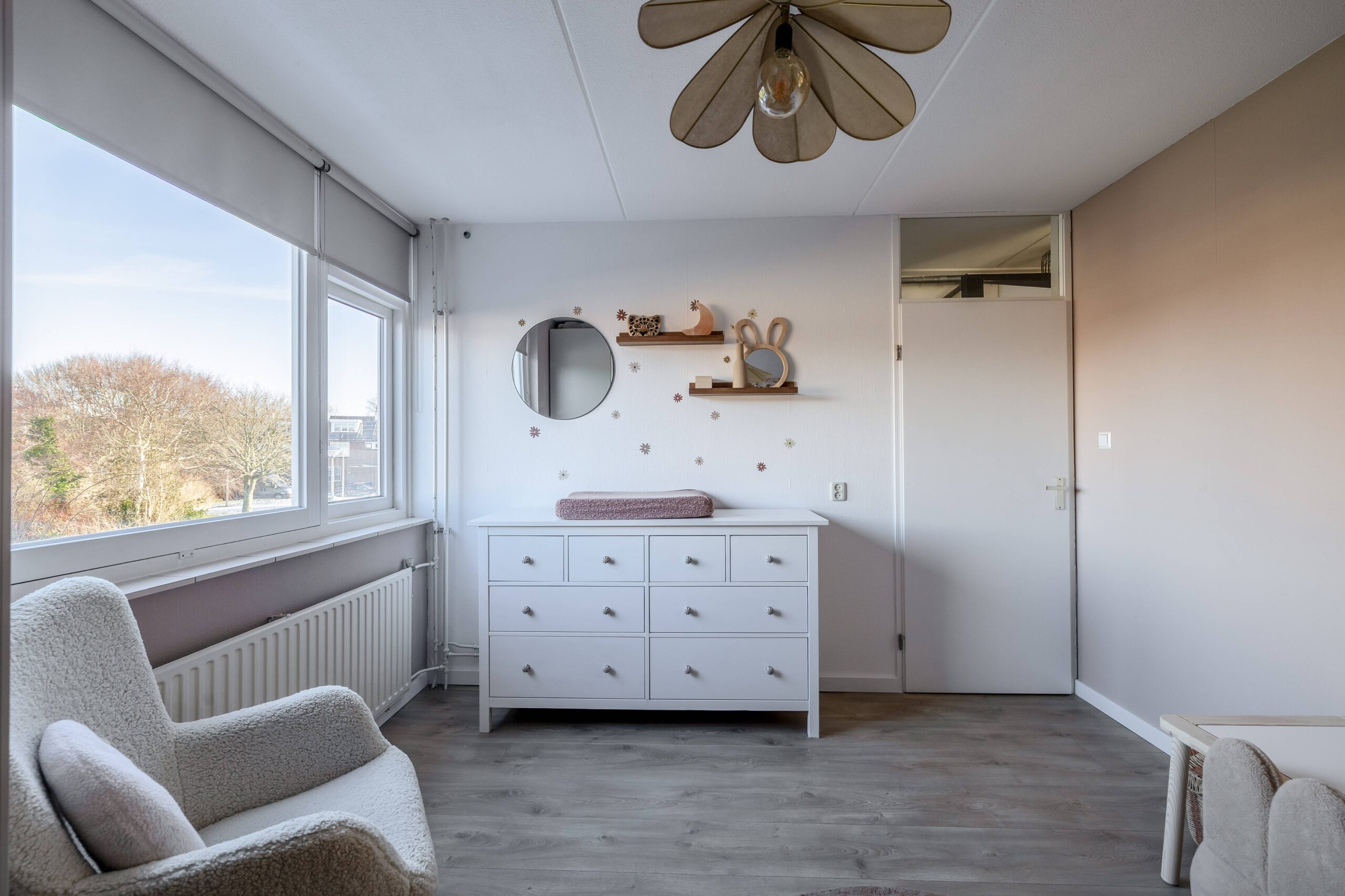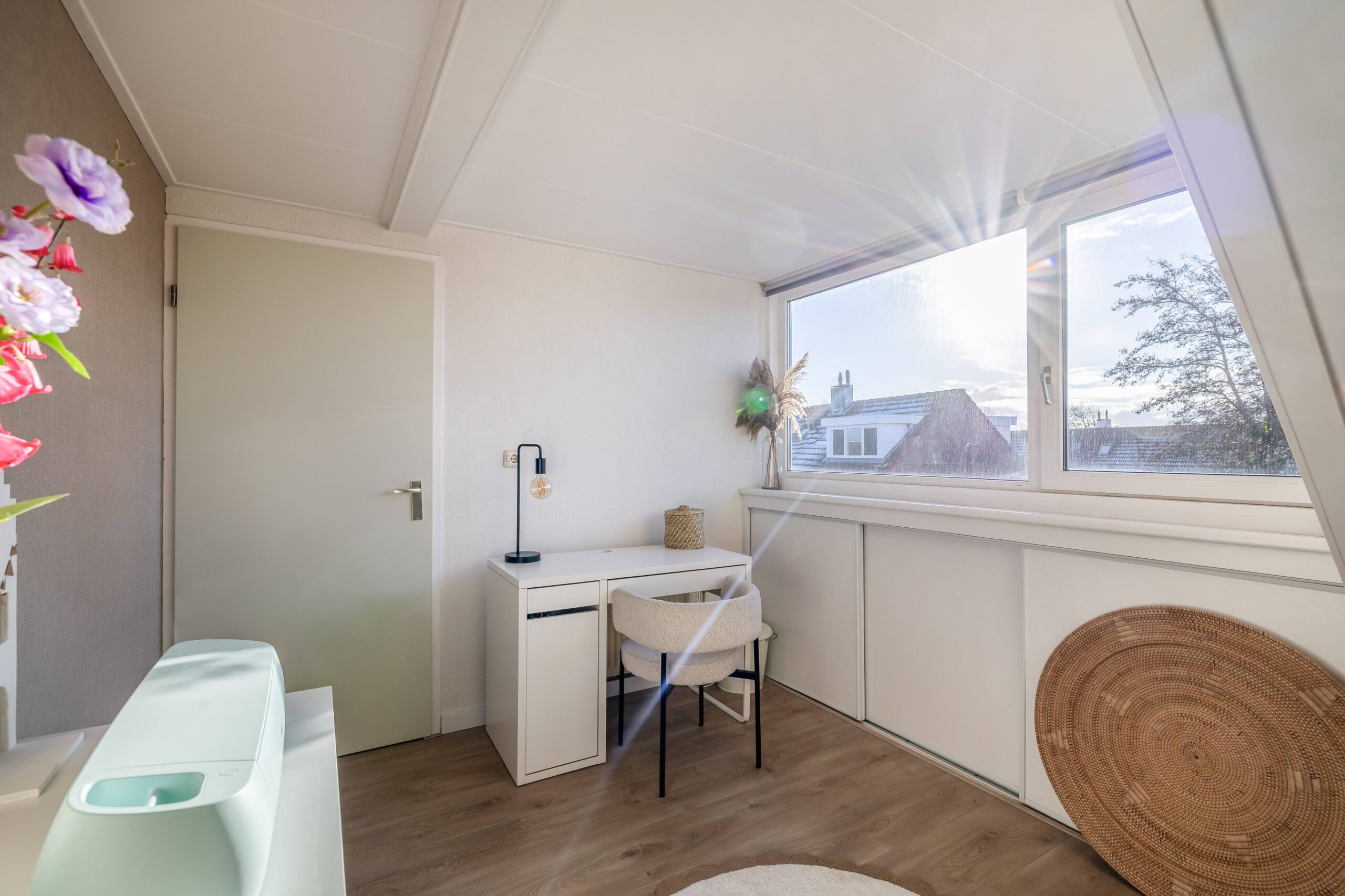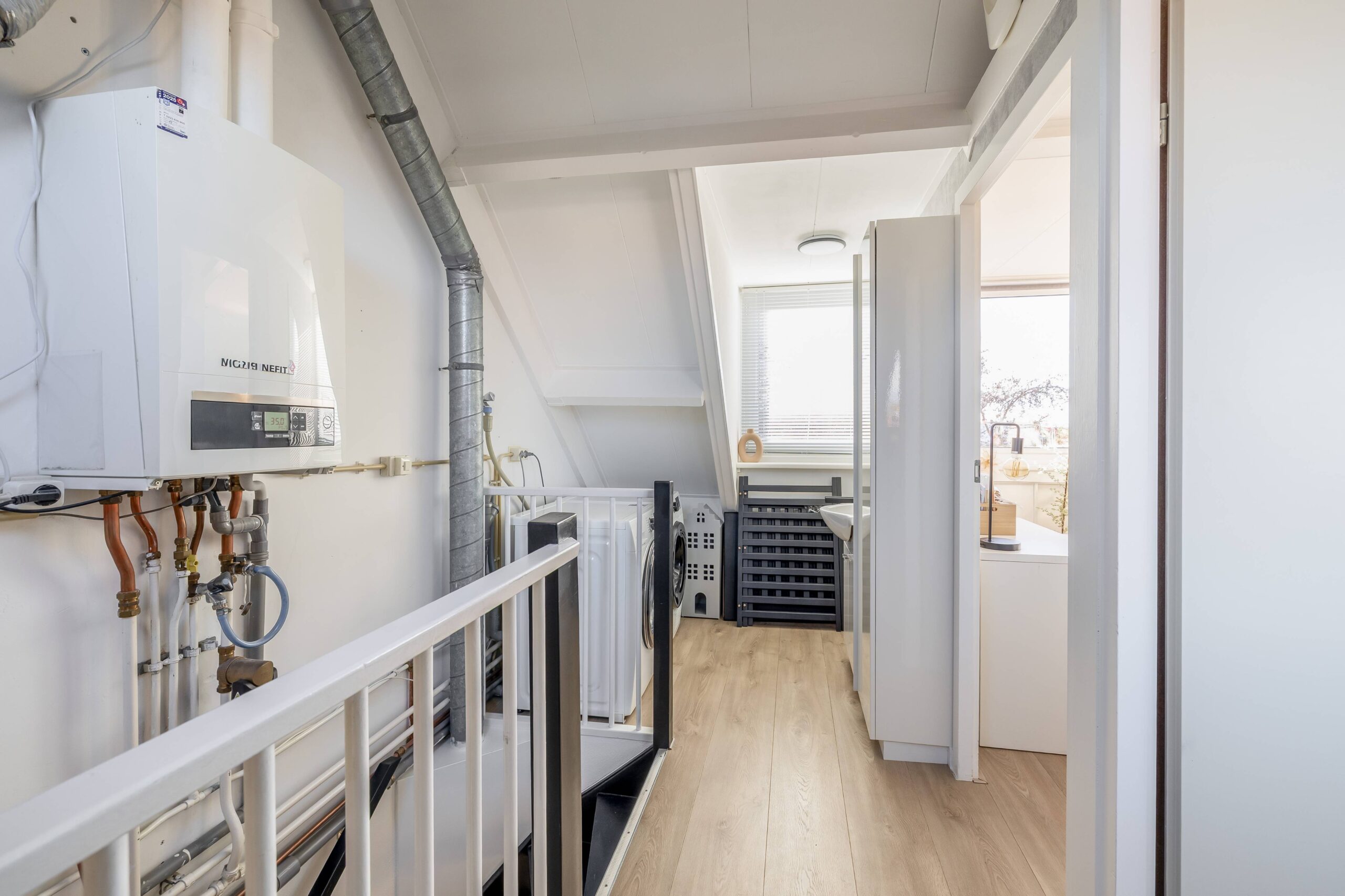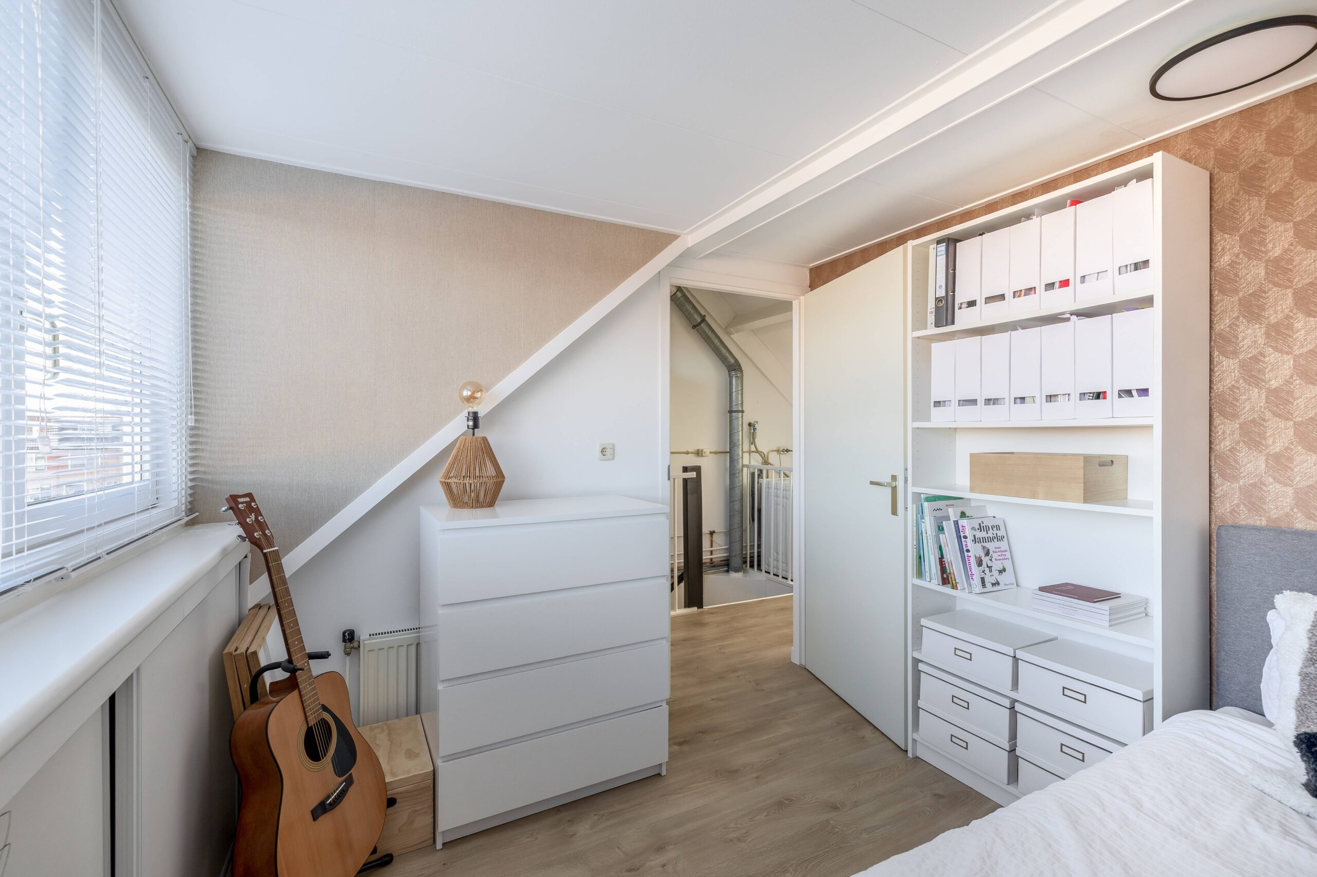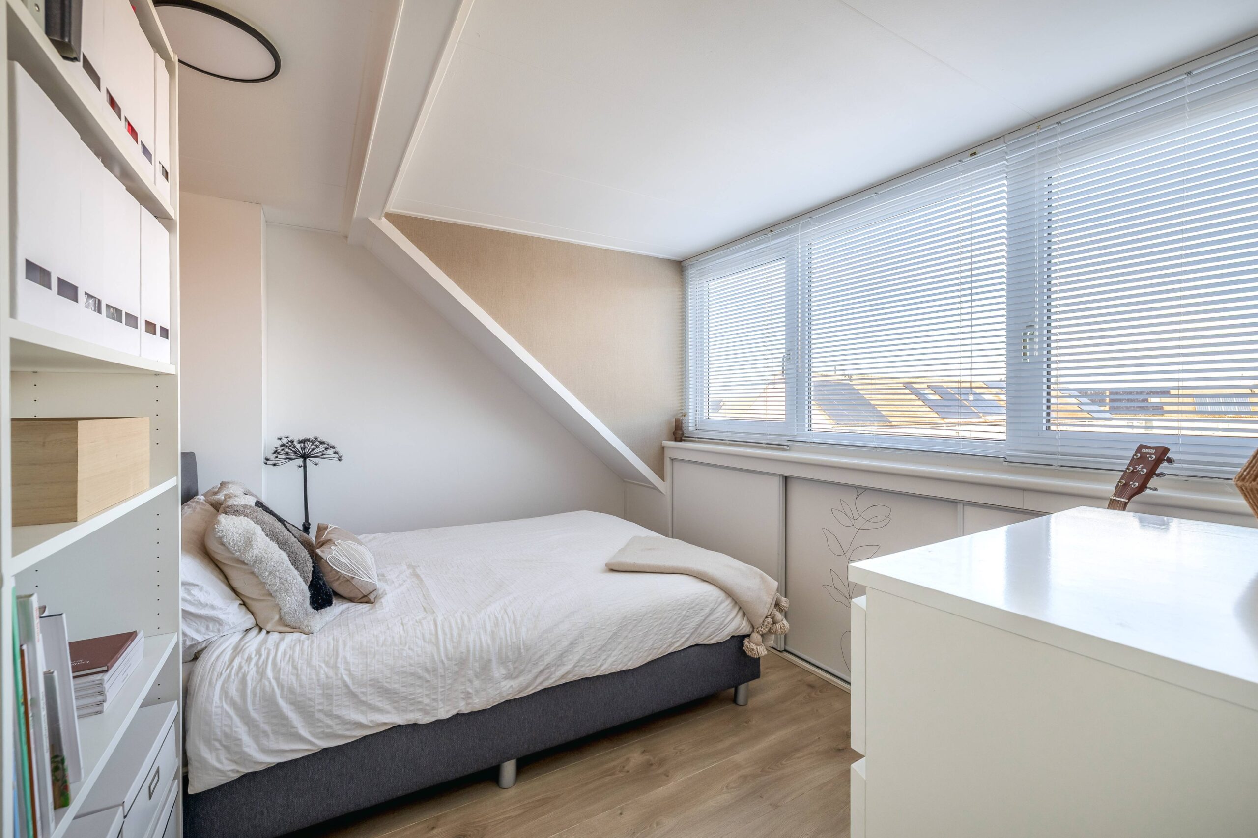 De tweede verdieping is bereikbaar via een vaste trap en biedt verrassend veel functionele ruimte. Op de voorzolder vind je een wastafelmeubel, de cv-ketel en de aansluitingen voor de wasmachine en droger. Dankzij de twee kunststof dakkapellen zijn de slaapkamers op deze verdieping opvallend licht en ruim. Bovendien is er volop bergruimte aanwezig: zowel de voorzolder als beide slaapkamers beschikken over praktische knieschotten, en op de voorzolder is ook een handige vliering bereikbaar.